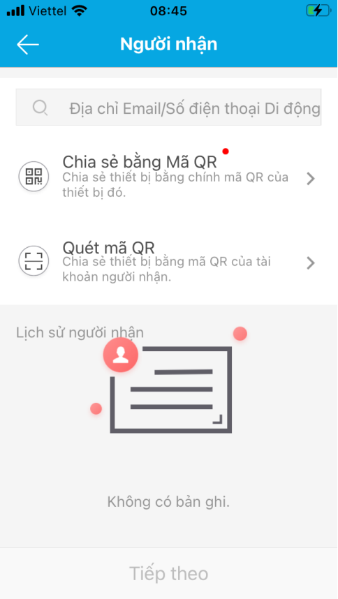 Bước 3: Nhập email hoặc sdt đã đăng kí tài khoản Hilook trên thiết bị mà bạn muốn chia sẻ