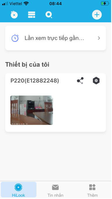 Bước 1: Mở ứng dụng “Hilook” trên điện thoại Android/Ios --> ta chọn vào phần để xem camera